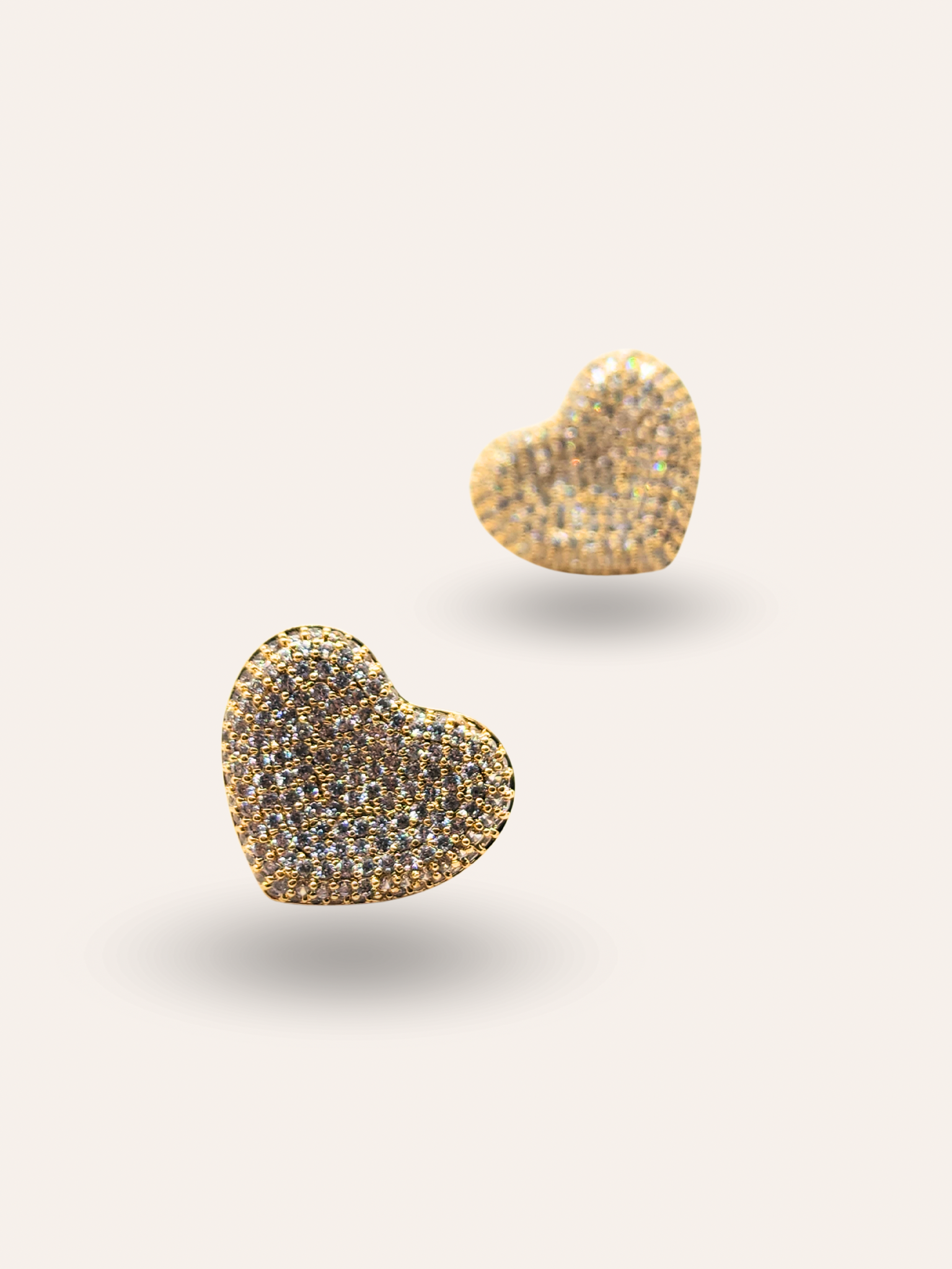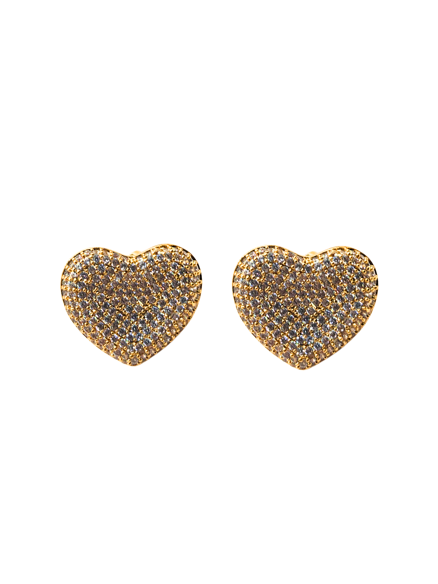 MATERIAL: Brinco Coração cravejado em zircônia banhado a ouro.