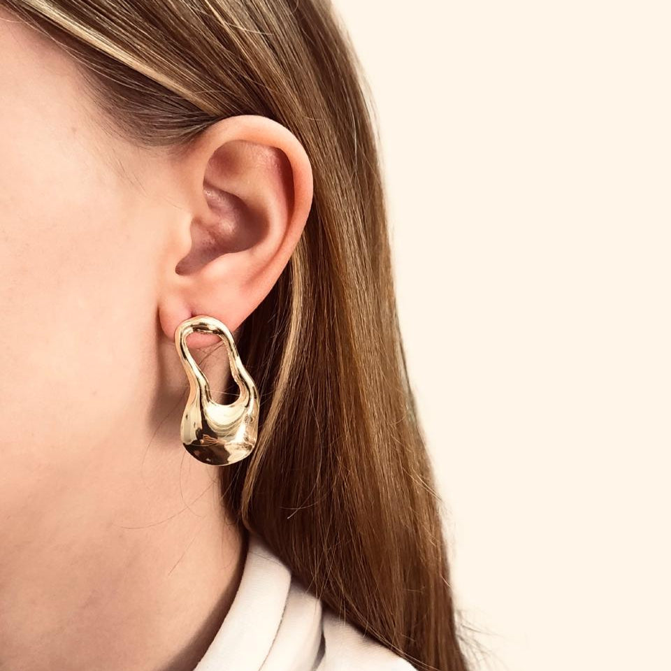 MATERIAL: Brinco Argola Disforme folheado a ouro.
